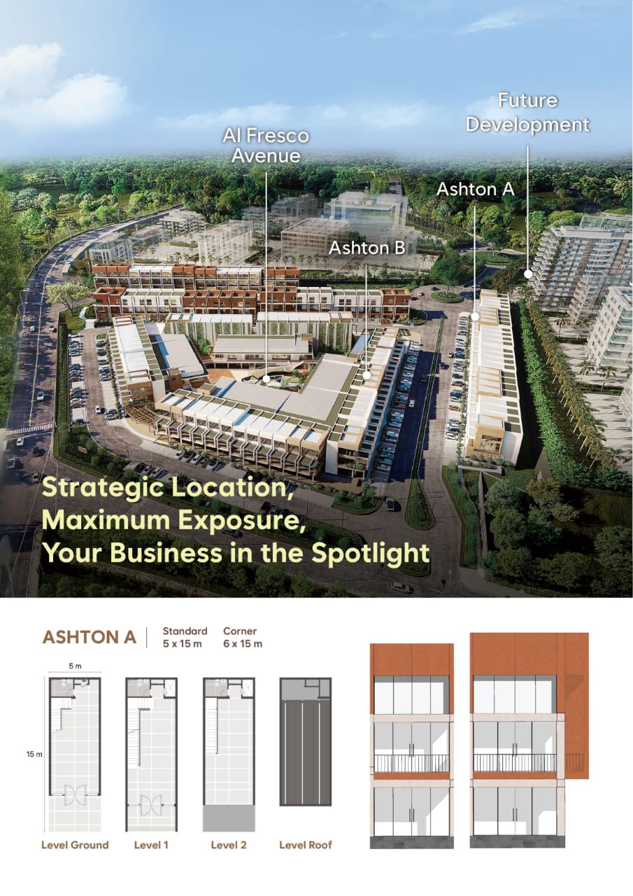 Ruko Ashton adalah lini perdana di 88Plaza, menawarkan ruang usaha modern di area boulevard utama. Dengan desain modern minimalis dan tata ruang fleksibel, Ashton cocok untuk retail, kuliner, atau kantor. Lokasi strategis dan visibilitas tinggi menjadikannya pilihan ideal bagi pelaku usaha dinamis. Ruko Ashton, baik unit typical maupun corner, memiliki ukuran fasad yang lebih lebar dan panjang, dengan nilai jual premium.