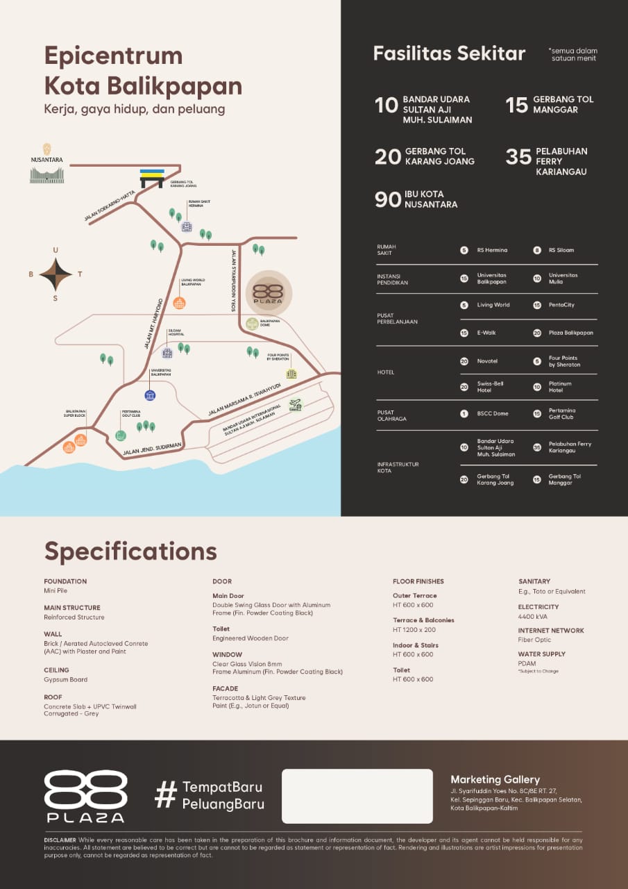 Terletak di lokasi strategis di boulevard utama 88Plaza, setiap unit menawarkan visibilitas tinggi serta fleksibilitas signage dan akses ideal bagi bisnis yang ingin menjangkau arus pengunjung dari berbagai arah. Setiap lantai juga telah dilengkapi toilet dengan shower untuk mendukung kenyamanan dan fungsi ruang secara maksimal.